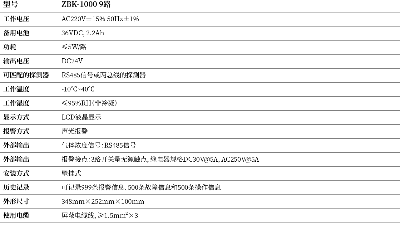 ZBK-1000气体报警控制器与PLC、PC等及我公司总线式气体探测器组成工业用气体报警控制系统。气体报警控制器通过RS485接口与PLC或PC通讯。